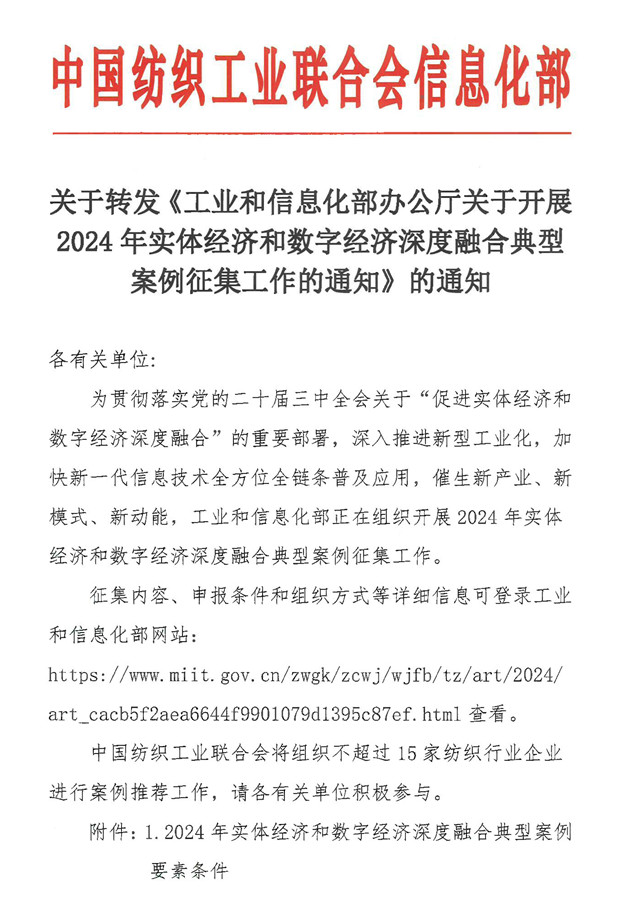 关于转发《工业和信息化部办公厅关于开展2024年实体经济和数字经济深度融合典型案例征集工作的通知》的通知