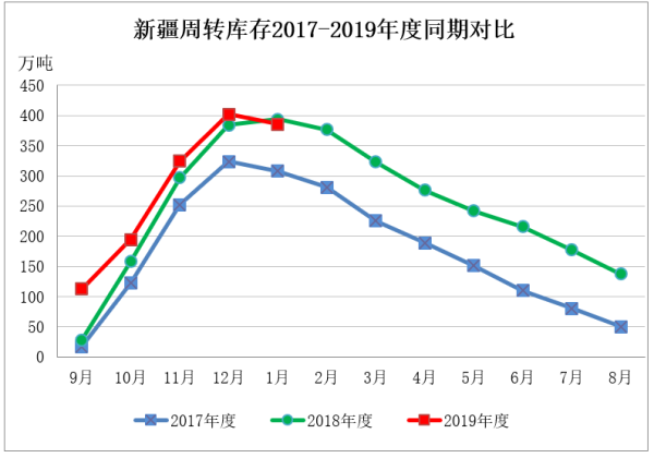 截至1月底新疆43家仓库商品棉周转库存385.51万吨,环比下降16.53万吨,低于去年同期8.1万吨。