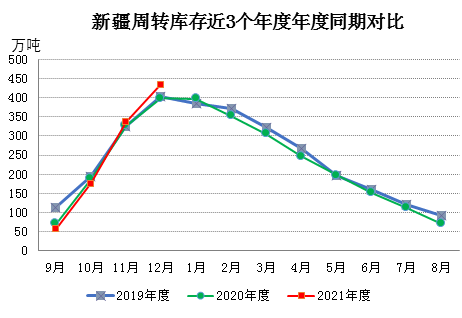 二、新疆棉花周转库存小幅增加 截至1月底,新疆43家仓库商品棉周转库存为439.81万吨,环比增加4.7万吨,增幅环比缩小;同比增加43.16万吨。