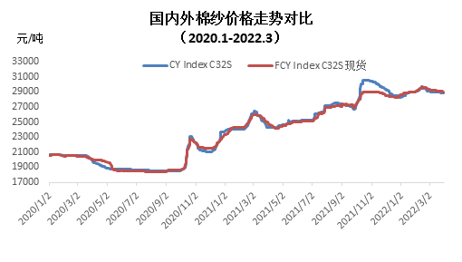 调查对象:新疆、山东、河北、河南、江苏、浙江、湖北、安徽、江西、山西、陕西、湖南等省、自治区的棉纺织企业 3月,本是纺织传统旺季,但受疫情影响,消费持续疲软,高原料成本叠加高成品库存之下,纺织企业经营压力加大,部分陷入亏损,出现停工停产现象,原料采购依然维持随用随买策略。据中国棉花预警系统对全国90余家定点纺织企业调查显示,本月纺织品产量环比上升,纱线库存和布库存增加,纺织企业原料库存下降。 一、纺织品产量环比增加 3月坯布面料市场供大于求,纺织企业成品库存仍在持续累积,加上疫情对生产、运输及消费均有不利影响,部分企业出现停工停产,另有部分主动降低开机率以减少现金流压力。由于2月含春节假期,纺织品产量较上月有所提升,但仍低于去年同期。本月产量和上月相比增长25.4%,同比下降16.1%,其中纯棉纱占比为52.5%,较上月下降3.4个百分点;混纺纱和化纤纱占比为47.5%,较上月上升3.4个百分点。 布产量环比增长24.9%,同比下降15.8%,其中纯棉布占比较上月下降1.8个百分点。纱线销售率为68%,较上月下降3个百分点。 当前纺织企业纱线库存32.03天,较上月增加2.68天。坯布库存37.45天,较上月上升2.23天。 二、内外棉纱价格均下跌 本月内外棉纱价格均下跌,国产32支纯棉纱3月均价28969元/吨,较上月下降419元/吨,跌幅1.43%,较去年同期上涨3455元/吨,涨幅13.5%;进口32支纯棉纱3月均价29152元/吨,较上月下降324元/吨,跌幅1.1%,较去年同期上涨3516元/吨,涨幅13.7%。