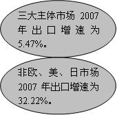 三大主体市场的5.47%远远低于整体19.11%的增速,说明我国出口市场多元化步伐加快,下表4列出了2007年同比增速较快的国家和地区。