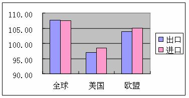 2007年我国纺织品服装进出口价格指数整体较上年同期均呈现上升趋势。对欧盟纺织品服装的进出口价格指数都有所上升,由于美元贬值的原因,导致对美国进出口的价格指数除出口纺织品略有上升之外其它都有所下降,但下降的幅度(除进口服装之外)都不是很大。总体反应出我国纺织品服装的竞争力不断提高。