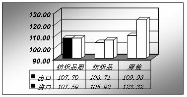 2001年以来,我国纺织品服装出口产品附加值不断提高,价格指数不断攀升。其中2007年纺织品、服装出口价格分别比去年同期提高3.71%和9.93%。
