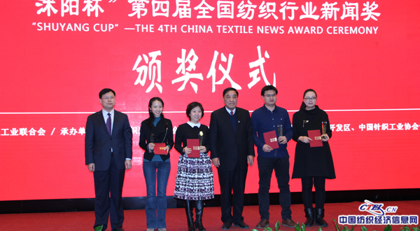 CTEI网讯 2015年1月17日,由中国纺织工业联合会主办、中国纺织工业联合会新闻中心承办的“沭阳杯“第四届全国纺织行业新闻奖颁奖仪式在北京举行。“沭阳杯“第四届全国纺织行业新闻奖获奖名单如下: